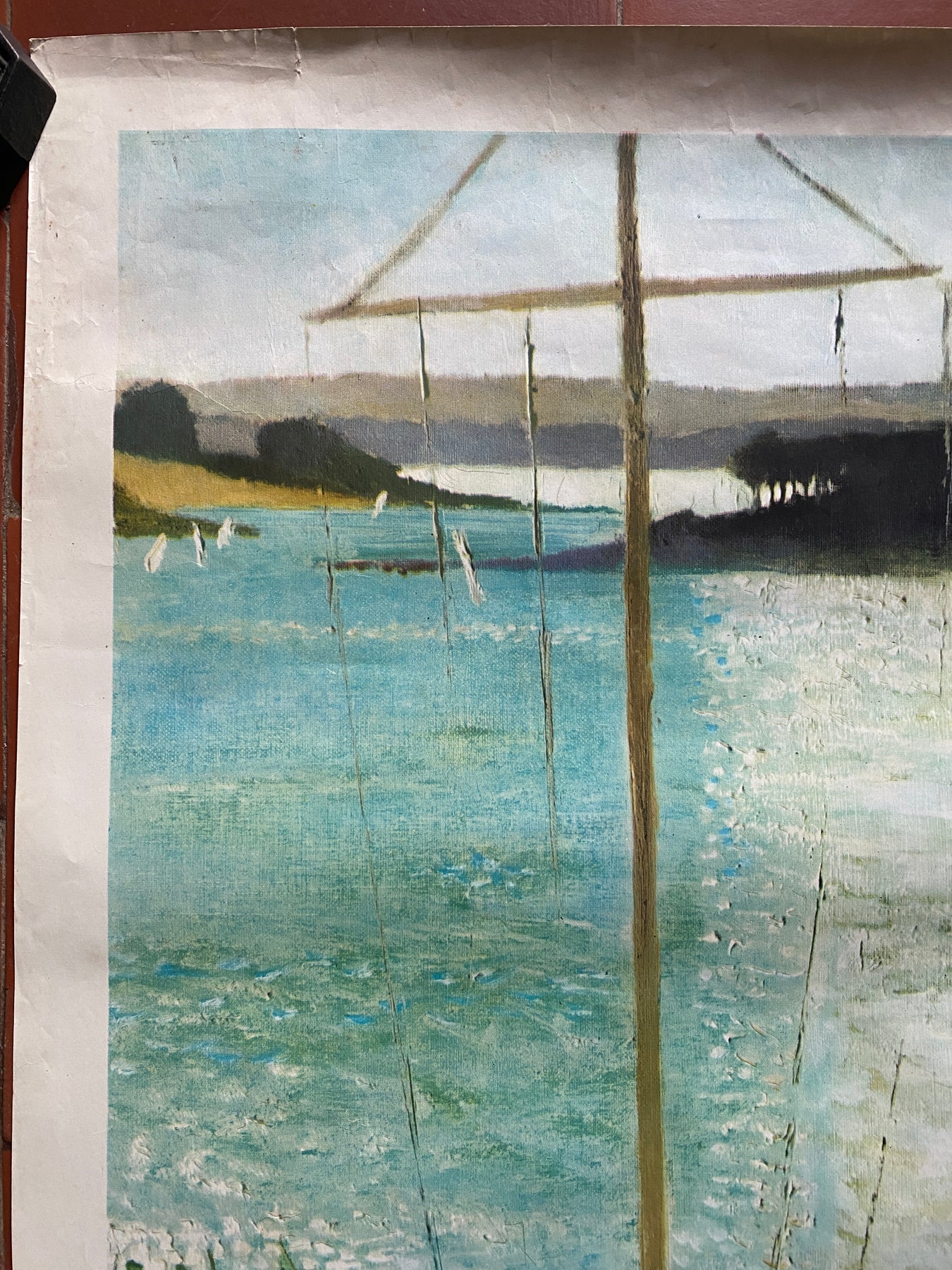 Roulée en état correct (quelques petites déchirures, petites taches, un petit manque dans le coin en bas à droite (voir photos))