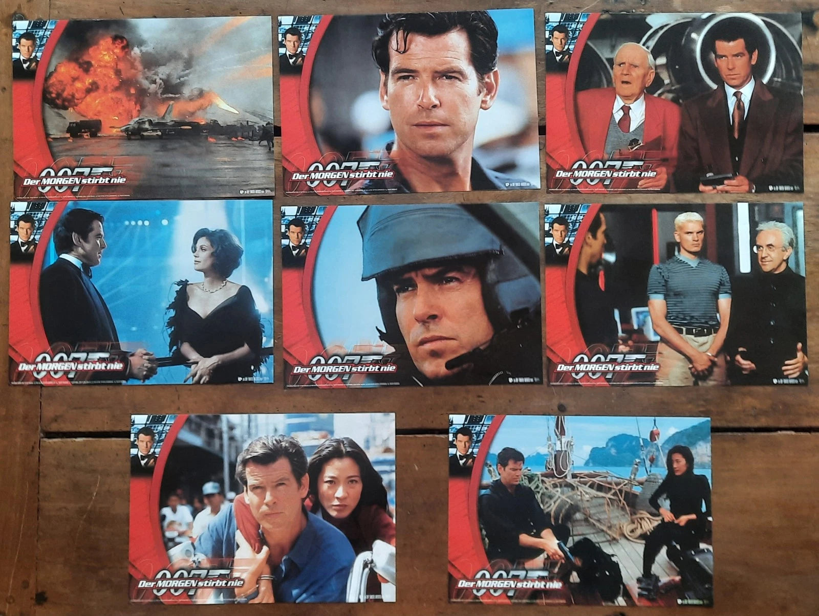 8 Photos originales allemandes DEMAIN NE MEURT JAMAIS James Bond 007 21x30cm