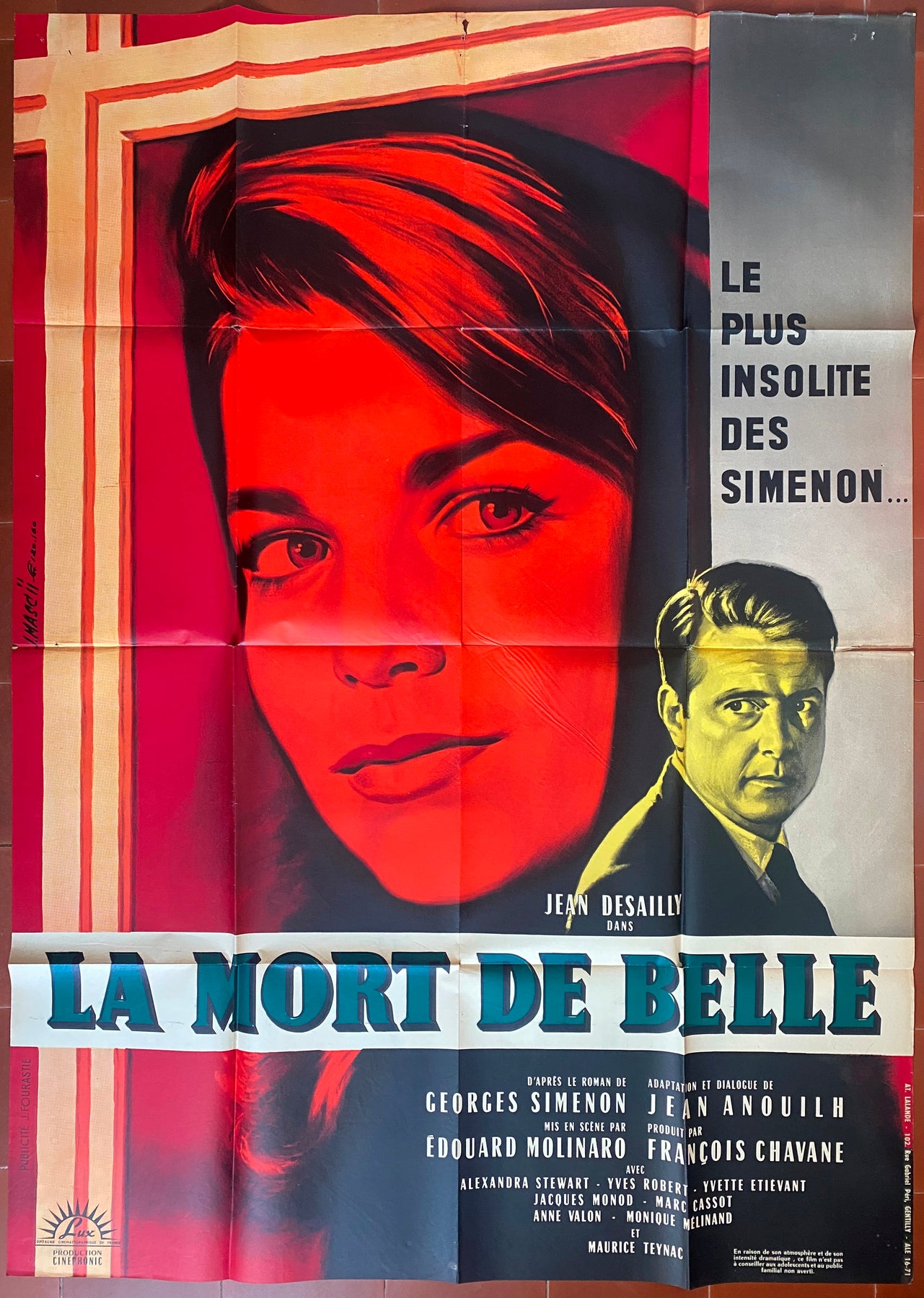 Affiche LA MORT DE BELLE Alexandra Stewart JEAN DESAILLY Simenon 120x160cm 1961