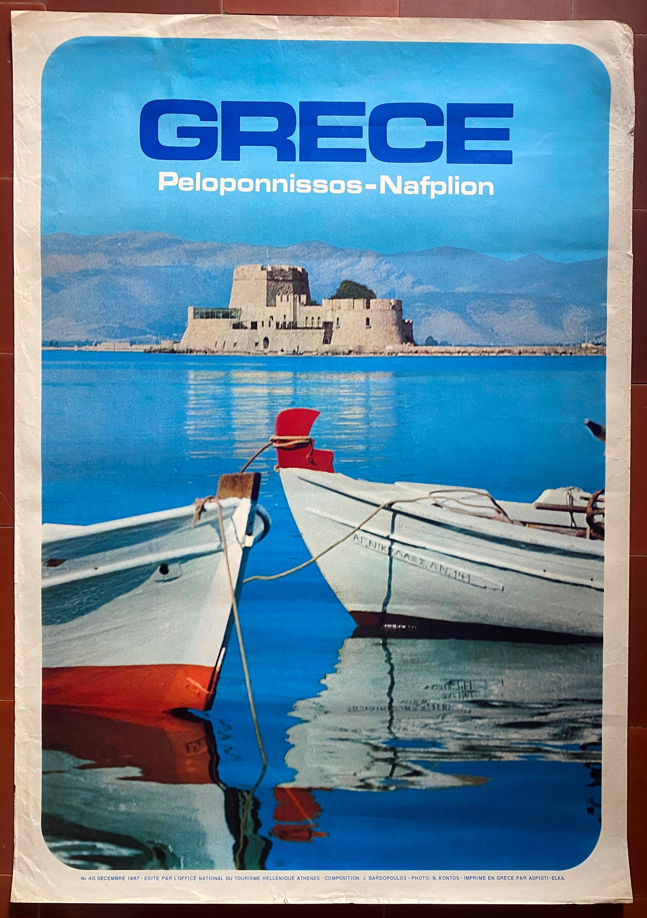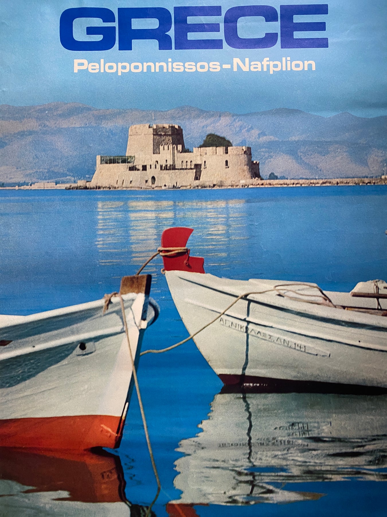 Affiche tourisme GRECE Péloponnèse Nauplie Mer Bateau Nafplion 70x100cm 1967