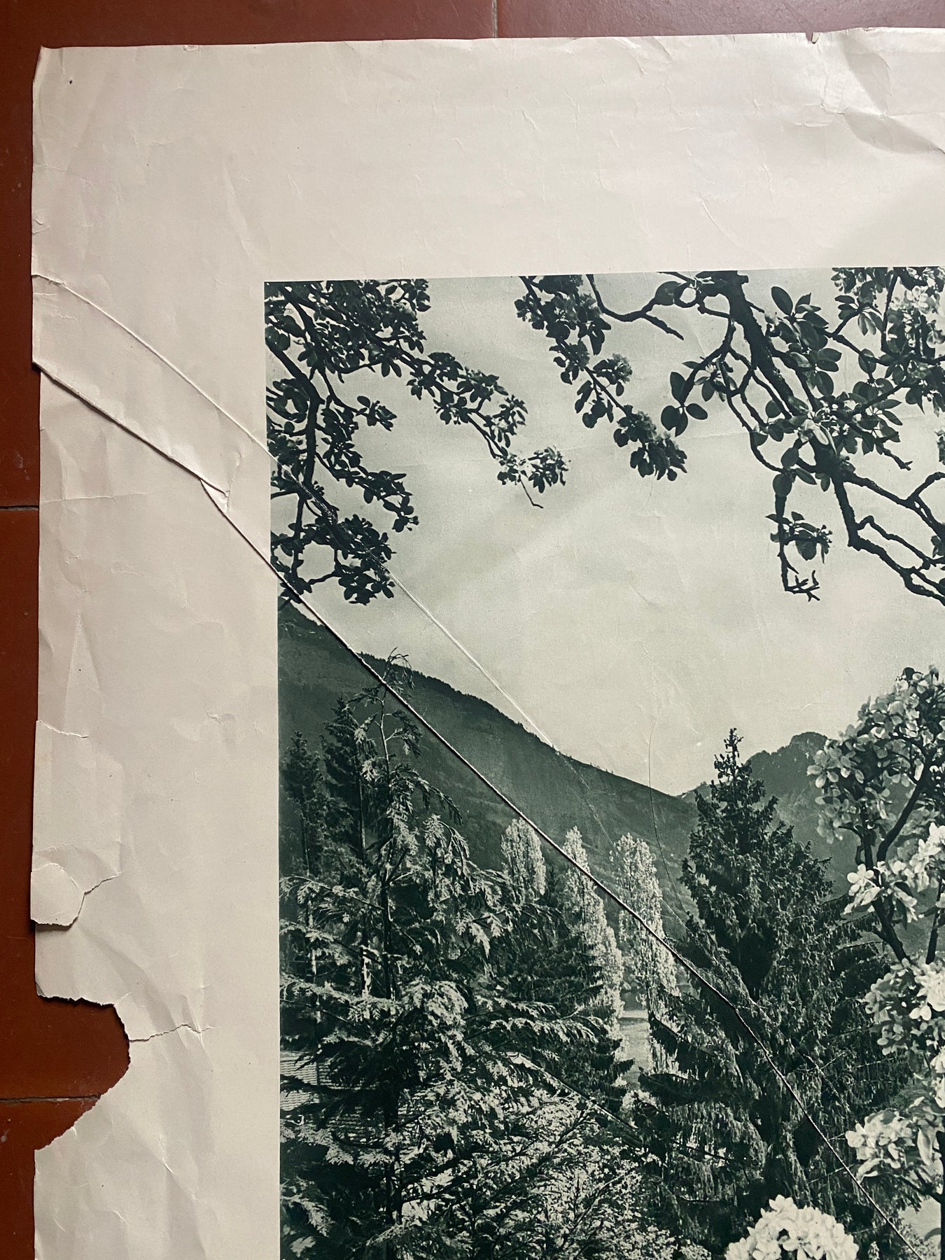 Roulée en état correct (déchirures, froissures, quelques trous de punaises, un manque bord gauche (voir photos))