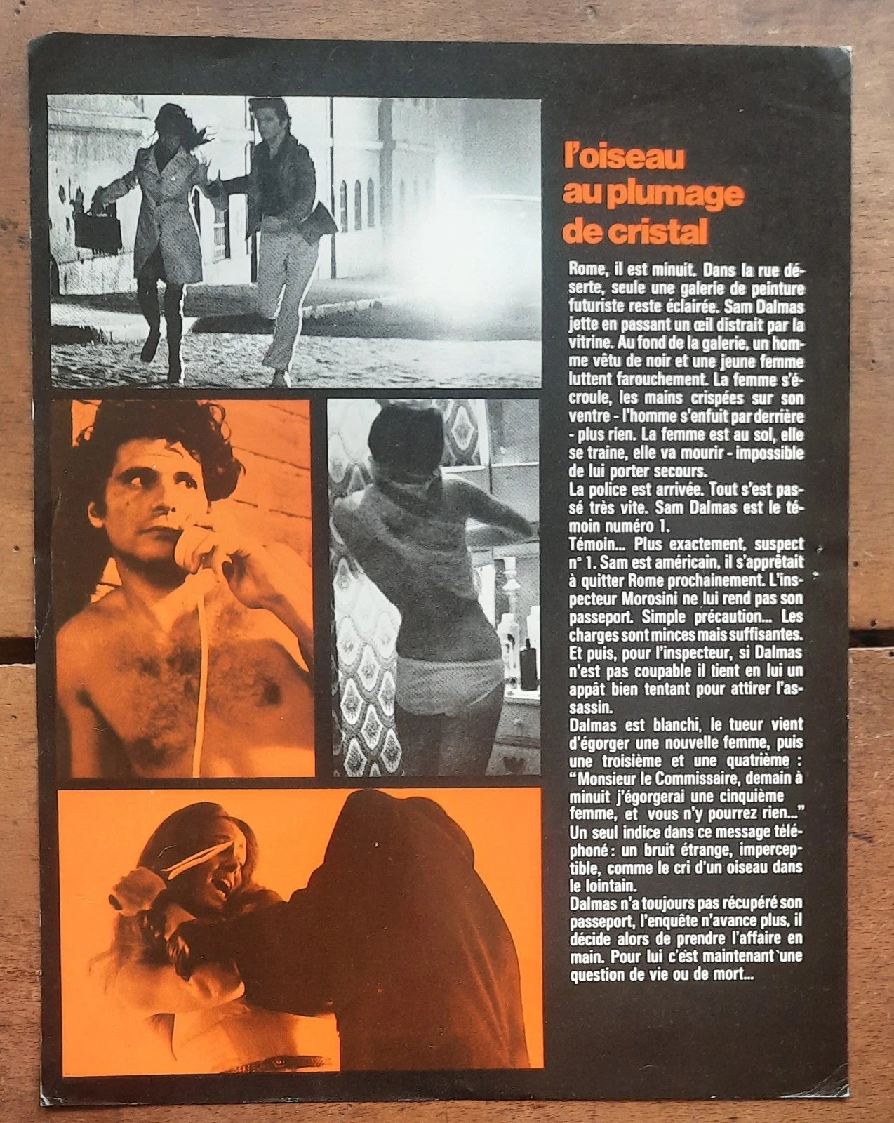 Plaquette L'OISEAU AU PLUMAGE DE CRISTAL Dario ARGENTO horreur 1970