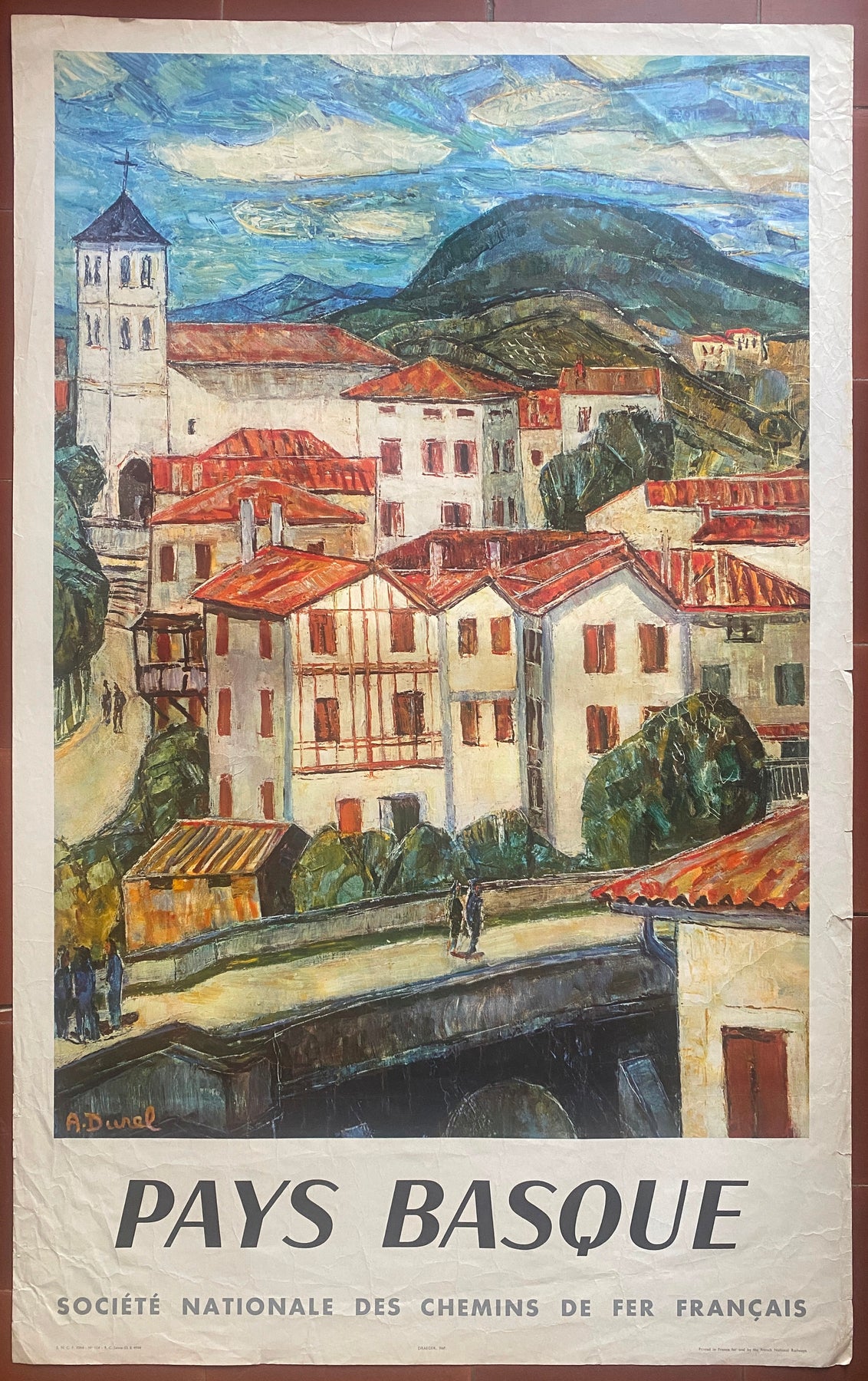 Affiche Tourisme PAYS BASQUE Chemins de Fer Français DUREL SNCF 62x100cm 1964