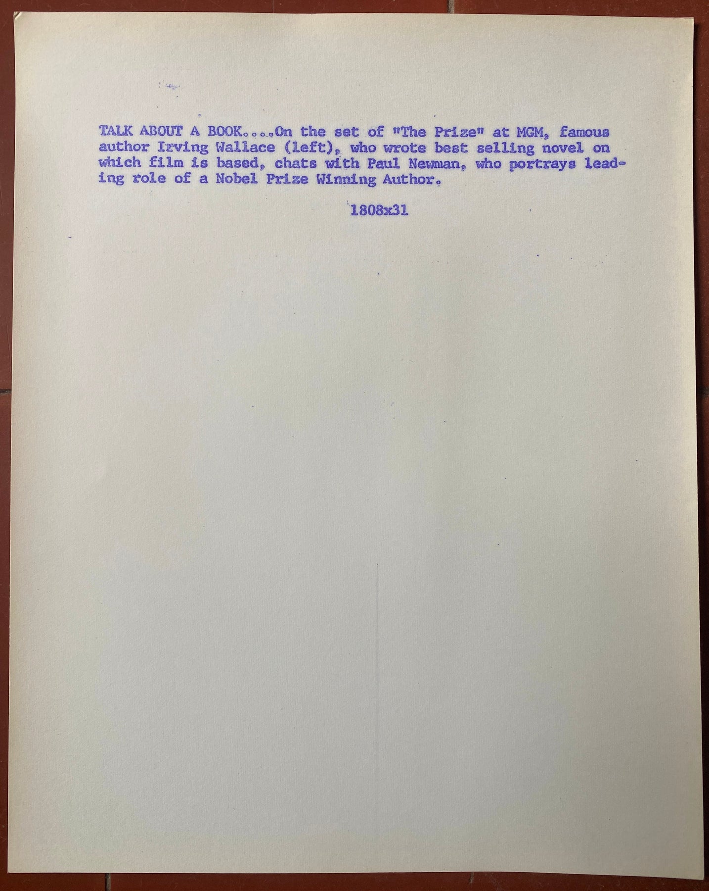 Acteurs / Actors : Paul Newman, Irving Wallace