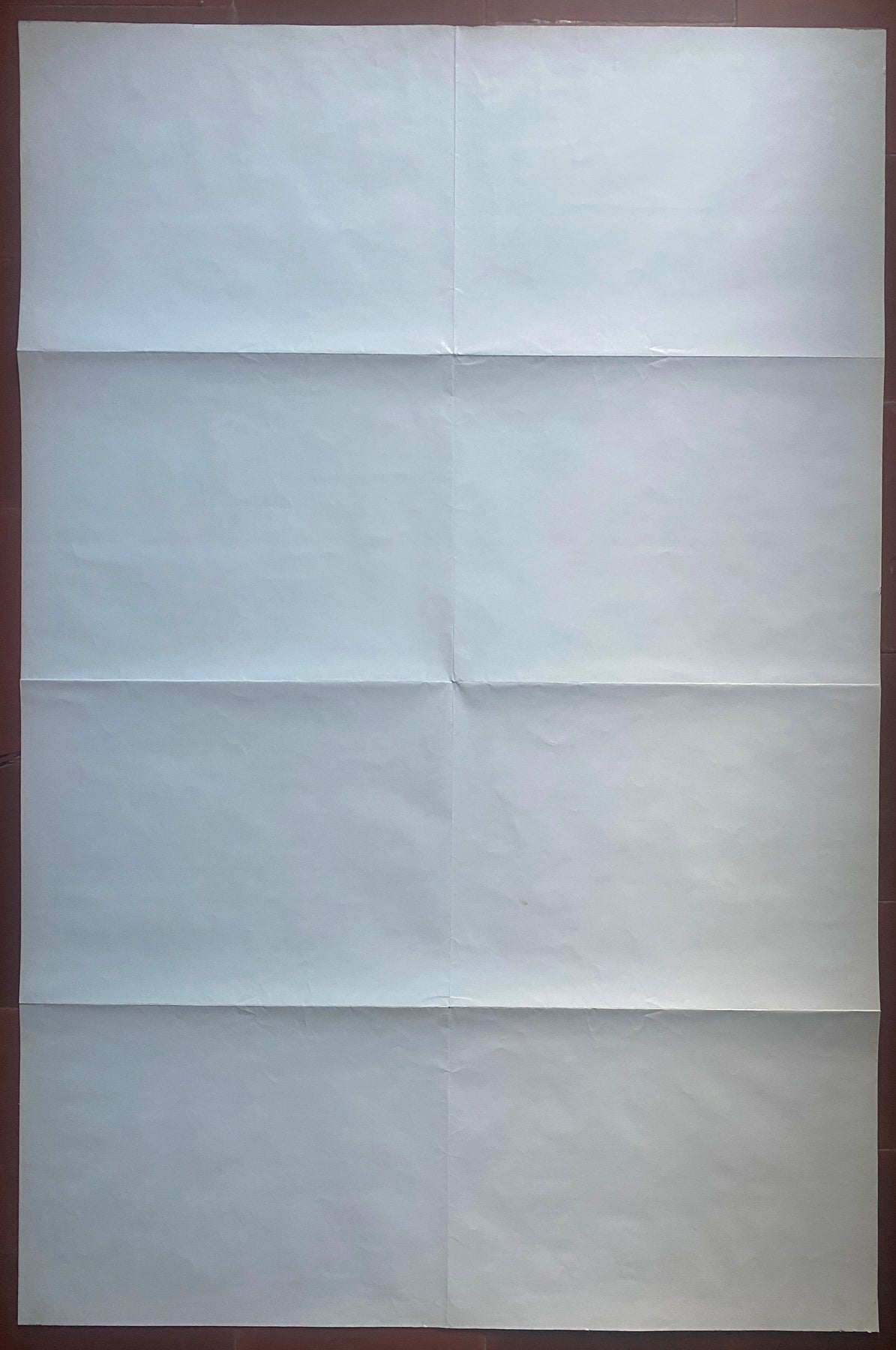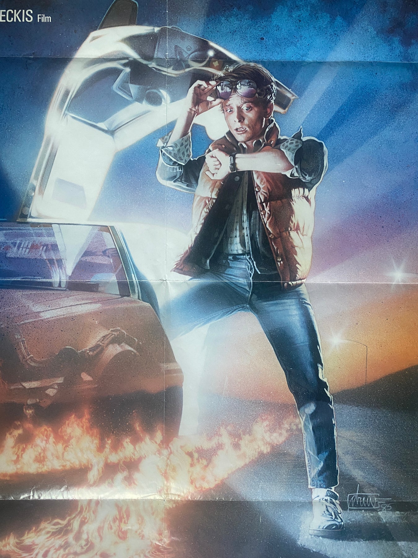 Folded in good condition (few very small tears on the edges, one small cut at the top edge, few very light adhesive stains in the corners at the back of the poster. The poster was framed (see photos))